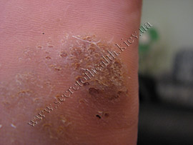 Звичайні бородавки. На тильній поверхні кистей і пальців рук, рідше на долонях з’являються пласкі, щільні, рожеві, жовтуваті чи кольору нормальної шкіри вузлики, які підвищуються над рівнем шкіри. Потім їх форма стає округлою, забарвлення більш теплим, а поверхня нерівною, зернистою.